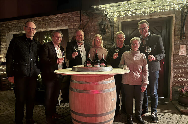 Beim Besuch von Landrat Thomas Eberth freute sich Max Markert über die ihm verliehene Ehre. Der Winzer und Kellermeister sprach aber auch über die derzeit großen Herausforderungen der Weinbau-Branche. Einerseits nähmen Wetterkapriolen zu: Beim Jahrgang 2024, mit dem Markert in der Weinprämierung 2025 angetreten ist, habe der Frost in einigen Lagen zum Totalausfall geführt. Glücklicherweise sei das Beiauge teilweise fruchtbar gewesen, allerdings mit rund einem Drittel weniger Trauben. Ausufernde Bürokratie und deutlich gestiegene Lohnkosten setzen die Winzer zusätzlich unter starken Druck. Wer genau hinschaue, könne zunehmend Weinberge erkennen, die brach liegen oder gar zum Verkauf stehen, so Markert.