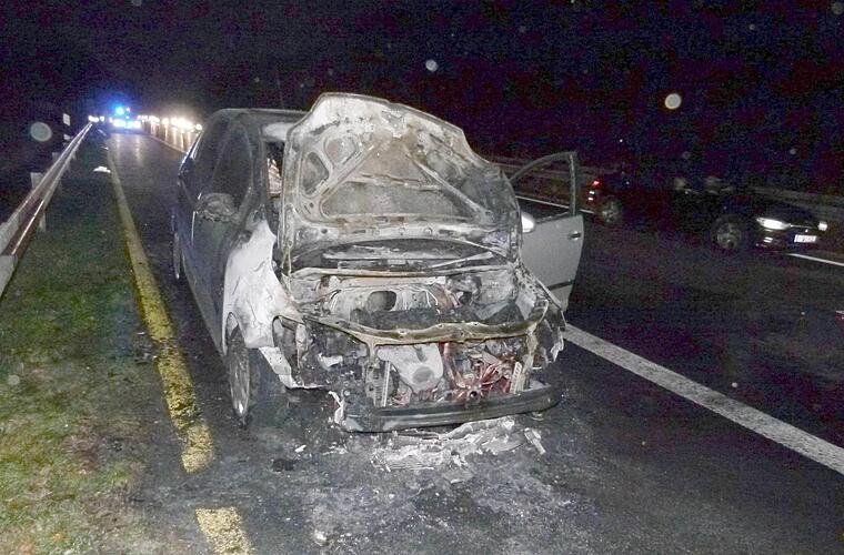 Die Feuerwehr konnte nicht verhindern, dass das Auto komplett ausbrannte. Als Brandursache wird ein defektes Kabel vermutet. Den Schaden schätzt die Autobahnpolizei auf etwa 4.000 Euro.