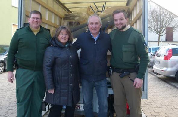 Die Beamten begleiteten den Transport nach Helmstadt zum Kindergarten St. Josef und halfen auch noch beim Abladen mit. Die Kindergartenleiterin nahm die hochwertig wirkenden Sachen gerne an.