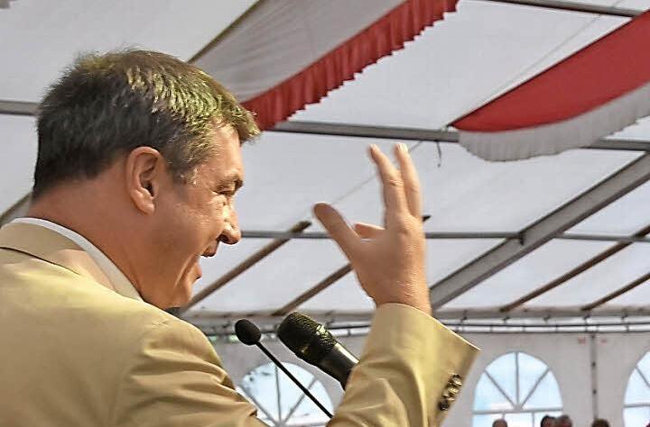 Ob es Zufall war? Zur Ankunft Söders im Festzelt war über dem südlichen Ochsenfurter Gau jedenfalls ein heftiges Gewitter mit Blitz, Donner und Regengüssen niedergegangen. Der Finanzminister ließ sich davon nicht beeindrucken - und bestätigte seinen Kurs als Hardliner in der Flüchtlingspolitik.