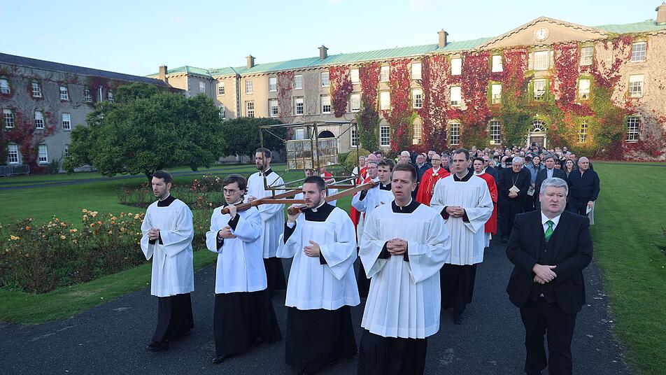 Die Häupter der Frankenapostel Kilian, Kolonat und Totnan seien in Maynooth, dem zentralen irischen Priesterseminar mit Päpstlicher Hochschule, von der gesamten irischen Bischofskonferenz und mehreren hundert Gläubigen begrüßt worden, berichtet das Würzburger Bistum. Mehr als 100 Pilgerinnen und Pilger aus dem Bistum Würzburg mit Bischof Dr. Franz Jung und Generalvikar Dr. Jürgen Vorndran an der Spitze nahmen am Mittwoch an einer Prozession durch die knapp 30 Kilometer westlich von Dublin gelegenen Stadt teil. Die Prozession mit dem Reliquienschrein endete in der neugotischen "College Chapel", die als eine der schönsten Kirchen Irlands gilt.