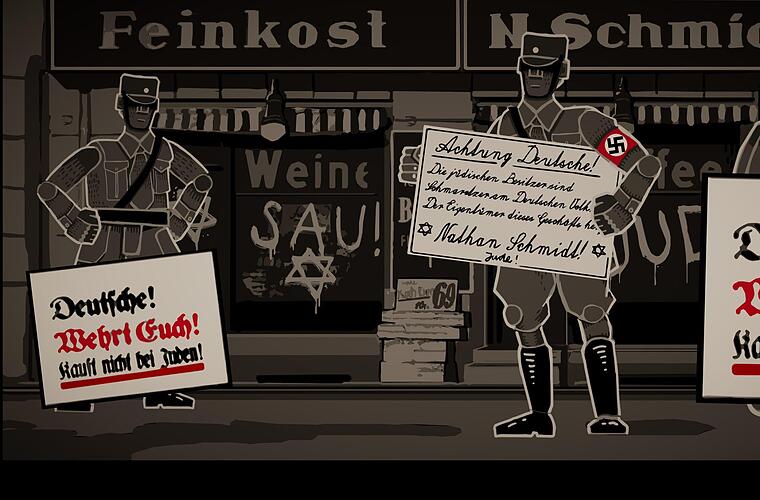 Oft müssen Spielerinnen und Spieler schwerwiegende Entscheidungen treffen: Gehen sie aggressiv dazwischen, wenn ein alter Mann mit Kippa von SA-Soldaten verprügelt wird? Lenken sie geschickt ab und ermöglichen ihm so die Flucht? Oder ignorieren sie die Szene und radeln einfach nach Hause? Manche dieser Szenen hinterlassen mehr als nur einen Kloß im Hals.