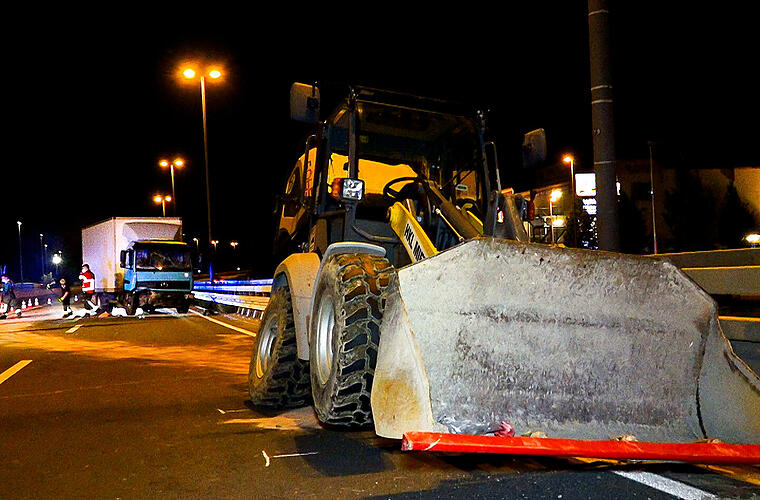 Nach ersten Erkenntnissen war der Lastwagen-Fahrer aus dem Kreis Kitzingen die Bundesstraße in Richtung Würzburg entlang gefahren. Der Radlader fuhr vor ihm, war aber fahrzeugbedingt deutlich langsamer unterwegs, wodurch es zum Aufprall kam.
