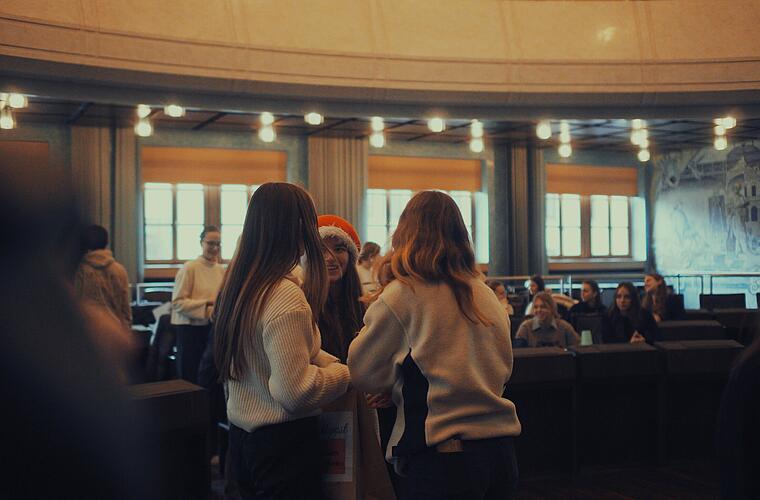 Eine große Hilfe und viel Zuspruch bekam SiA auch bei den Mitarbeiterinnen und Mitarbeitern des städtischen Bildungsbüros und des Stadtjugendrings, wo man nach der Vorstellung des Projektes beim Würzburger Schüler*innen Tag (WÜST) die Entwicklung willkommen heißt, sehr begrüßt und zusätzliche Unterstützung in Aussicht stellte. Das SiA-Team nahm 2023 auch bereits die Organisation der traditionellen, schulübergreifenden „Weihnachtspost- Aktion“ in die Hand – am 15. Dezember 2023 kamen die teilnehmenden Schulen im Ratssaal zusammen und tauschen Briefe aus, die sich Schülerinnen und Schüler verschiedener Würzburger Schulen geschrieben haben. Nach demselben Prinzip funktioniert auch die „Valentinstags-Aktion“, bei der es zusätzlich die Möglichkeit gibt, schulübergreifend Rosen zu versenden.