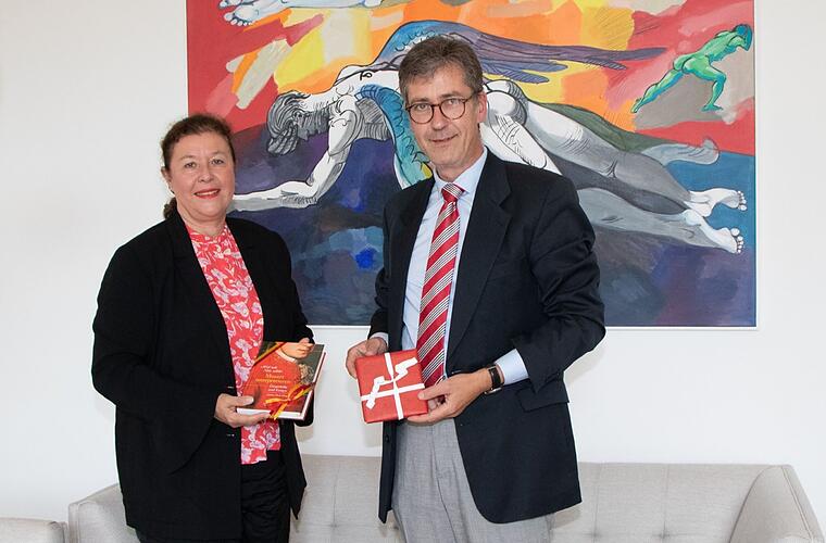 Dr. Eva Maria Ziegler, Österreichs Generalkonsulin in München, stattete Oberbürgermeister Christian Schuchardt einen ersten persönlichen Besuch ab, so berichtet die Stadt Würzburg in einer Pressemitteilung. Seit Juli 2021 ist die promovierte Juristin Ziegler Generalkonsulin in München, zuvor war sie Österreichische Botschafterin auf Zypern, Leiterin der Abteilung für Südtirol und Südeuropa im Außenministerium, Österreichische Botschafterin im Libanon und Österreichische Generalkonsulin in Mailand.