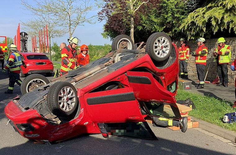 Dadurch überschlug sich das Auto der Unfallverursacherin und landete auf dem Dach. Die Fahrerin musste nun durch die Feuerwehr aus ihrem Auto befreit werden. Dies geschah mithilfe von hydraulischem Gerät: Über den Kofferraum wurde ein Zugang geschaffen.