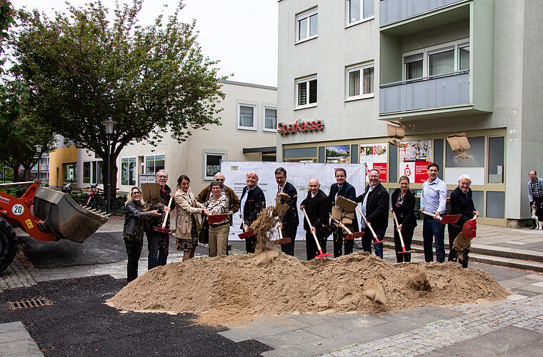 Ein großer Abstimmungsbedarf und insgesamt eine große Projektdimension zeichnen die Platzumgestaltung aus, die laut Schneider erst durch den Sonderfonds „Innenstädte beleben“ realisierbar wurde. Bei Baukosten von rund 2,1 Millionen Euro, sind die 80 % Förderung der Regierung von Unterfranken ein „großer Segen“. Des Weiteren freute man sich nach einer erfolglosen nationalen Ausschreibung, in der zweiten Runde in einem beschränktem Verfahren mit der Firma Würzburger Pflasterbau einen kompetenten Partner aus der Region verpflichten zu können. Claus Köhler vom Quartiersbüro moderierte den Spatenstich, im März 2024 könnte bereits eine Einweihungsfeier folgen.