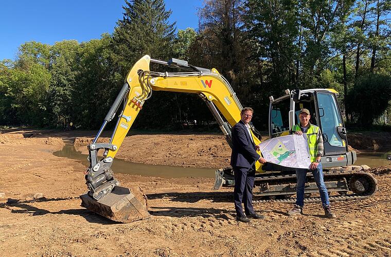 Moritz Reininger, Leiter der Stabsstelle Gewässerentwicklung fügte hinzu: "Als letzten Schritt steht nun noch der Einbau von Strukturelementen an. Hierzu gehören unter anderem Totholz, Störsteine, Kiessubstrat, Wurzelstöcke und Weidenstecklinge. Dadurch entsteht ein vielfältiges Mosaik aus verschiedenen Lebensräumen für Tiere und Pflanzen und nicht zuletzt auch für den Menschen."
