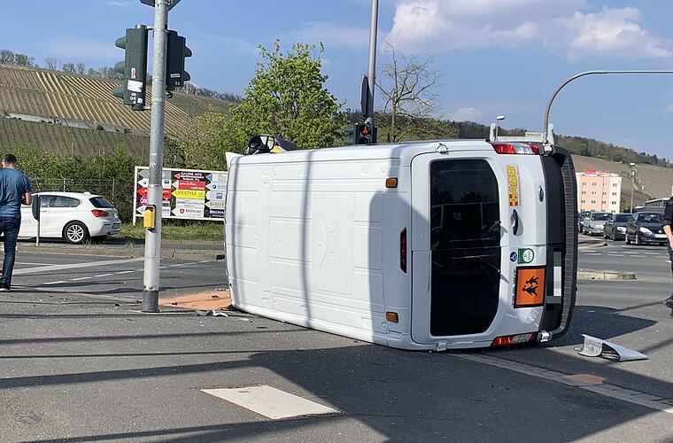 Ein 69-jähriger Autofahrer fuhr von der Dreikronenstraße kommend auf der Mainaustraße in Richtung Zell. An der Kreuzung Georg-Eydel-Straße/Brücke der Deutschen Einheit fuhr er über eine rote Ampel und kollidierte mit einem von rechts kommenden Kleinbus.