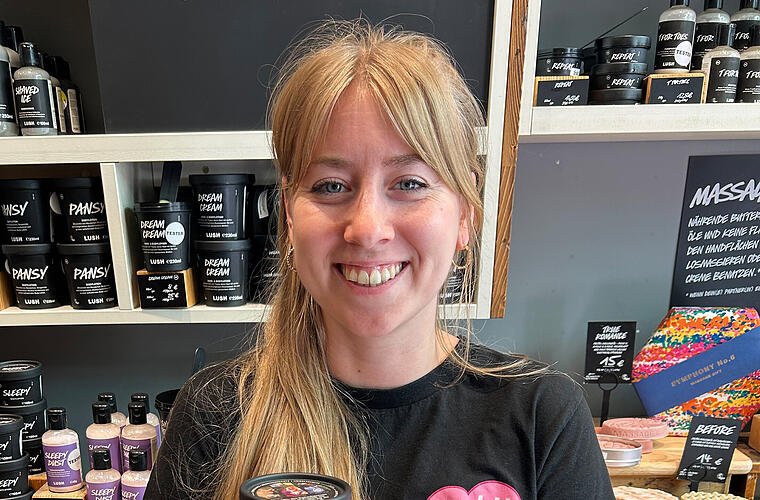 In ihrer Rolle als Shop-Managerin des Kosmetikgeschäfts Lush, das sich in am Würzburger Dominikanerplatz befindet, versorgt Tamara Hinterlang Menschen mit handgemachten, tierversuchsfreien und häufig unverpackten Kosmetikprodukten. Ein Produkt ist bei ihren Kund*innen besonders beliebt: Der „Charity Pot“, eine Bodylotion, von der 100 % des Nettoverkaufspreises an Wohltätigkeitsorganisationen gehen. Die Mission von Tamara: Mehr Aufmerksamkeit für lokale Gruppen und Vereine schaffen, die von anderer Stelle wenig Unterstützung erhalten.