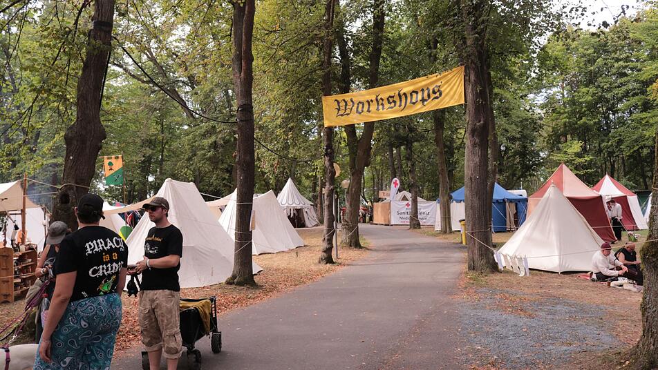 In alter Tradition öffnete das Mittelalter Musikfestival auch in diesem Jahr wieder seine Toren auf dem "Goldberg", einem Stadtpark in Selb. Zusätzlich zum klassischen Mittelalterprogramm gibt es in diesem Jahr spezielle Angebote für Gothic-Fans, die das normale Programm erweitern. Das zeigt sich beispielsweise an der Auswahl der Bands und den Workshops, die in diesem Jahr alle mit einem Gothic-Thema stattfinden. In einem Workshop könnt ihr beispielsweise lernen, wie ihr euch mit einem Spazierstock selbst verteidigen könnt. Damit alle Mittelalter-Fans auf ihre Kosten kommen, ersetzt das Gothic-Programm nicht den allgemeinen Festbetrieb, sondern erweitert es mit vielen Angeboten.