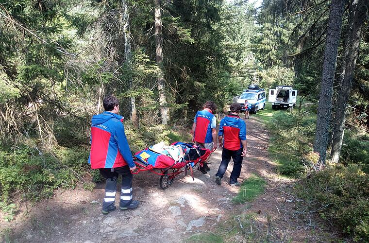 Aufgrund starker Schmerzen konnte sie ihre Wanderung nicht fortsetzen, so die Bergwacht. Trotz der "ungünstigen Alarmzeit" - ein Nachmittag an einem Werktag - gelang es demzufolge, schnell zwei Einsatzkräfte mit dem Rettungsfahrzeug und eine weitere Einsatzkraft mit einem Quad (BW-Geländefahrzeug) zu mobilisieren.