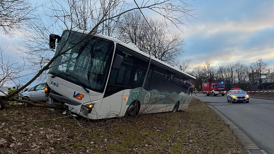 Der Bus fuhr im Anschluss weiter in die neben der Straße befindliche Böschung und kollidierte dort mit einer Reihe kleinerer Bäume. Durch den Aufprall verletzte sich eine Insassin leicht am rechten Fuß und kam zur weiteren Behandlung ins Klinikum nach Marktredwitz.