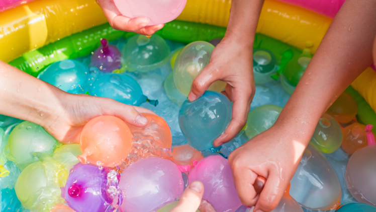 Ob bei einem Kindergeburtstag oder gemeinsam mit der Familie, eine Wasserschlacht ist eine wunderbare Beschäftigung in den heißen Sommermonaten. Alle Mitspielenden bekommen die gleiche Menge an gefüllten Wasserbomben. Hier sind Eimer praktisch, in denen die gefüllten Luftballons einfach abgezählt werden können.
