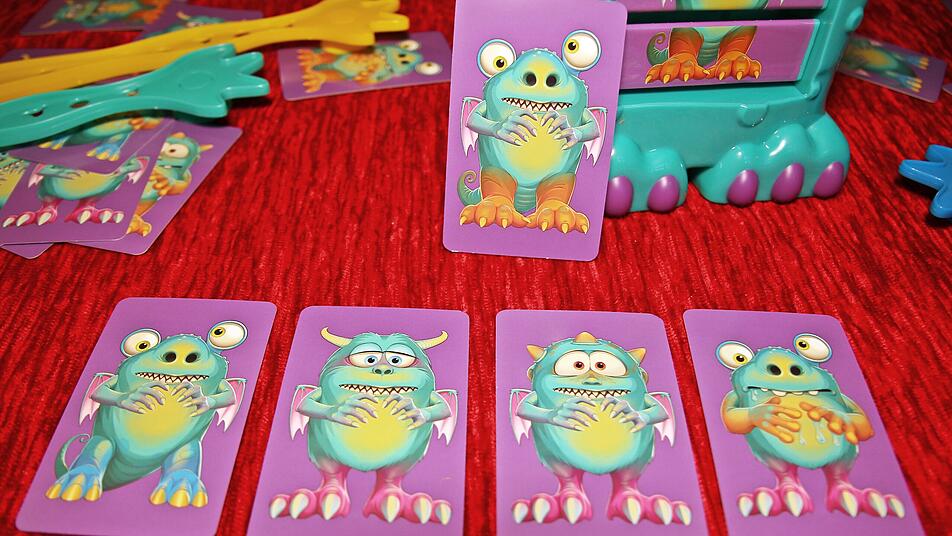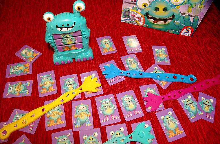 Ein Druck auf den Monstermixer, und die Jagd beginnt. Wer die richtige Karte findet, haut schnell mit der Saugnapfklatsche darauf. Wir haben uns wagemutig unter die „Monsterjäger“ gemischt, und hier ist das Ergebnis.