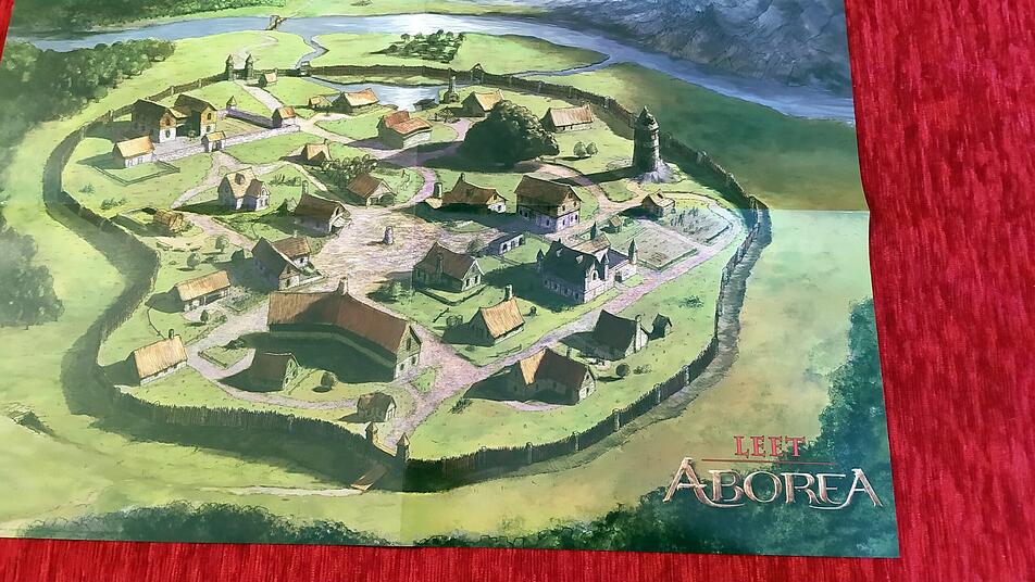 In der stabilen Box von "Aborea - Tischrollenspiel (8. Edition)" - so der präzise Titel - ist alles vorhanden, was die Rollenspieler für den Einstieg in die Fantasiewelt benötigen: ein Spielerheft, ein Spielleiterheft und ein Heft mit Spielmaterial, alle drei mit stabilen Umschlägen. Weiter zeigt eine farbige Karte das Dörfchen Leet. Ein enormer Blickfang ist die Farbkarte des Kontinents Aborea mit einer Größe von DIN A0. Wenn diese nicht die Fantasie der Spielerunde anregt, was dann?