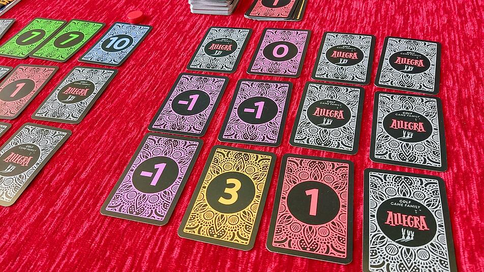 Zahlenkarten im Raster anordnen und optimieren: Das Prinzip von Allegra erinnert uns an ein anderes Kartenspiel, das zu den Dauerbrennern auf unseren Spieletischen gehört: Skyjo. Unser Test zeigt, ob Allegra nicht nur dessen hübscher anzusehender Klon ist.