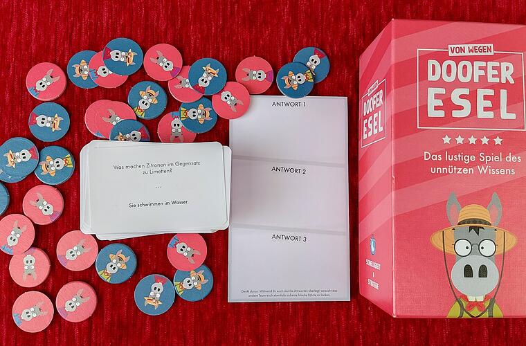 - Doofer Esel: Rezension des Partyspiels über unnützes Wissen