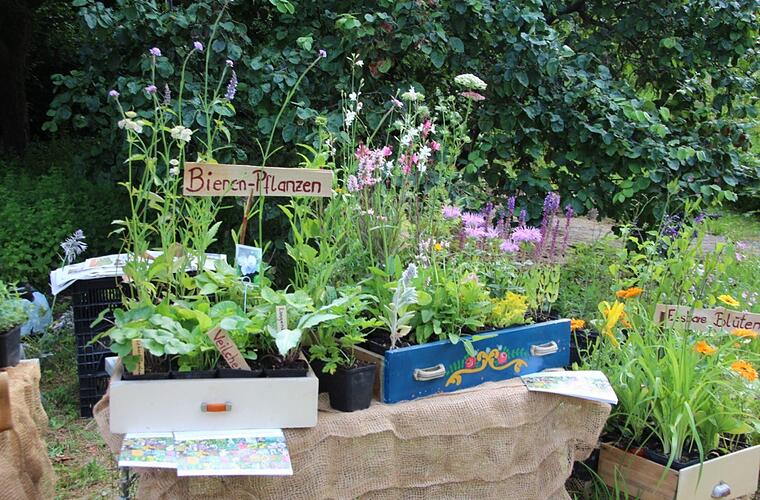 Vor lauter Regalen mit Petunien, Zauberglöckchen und Geranien, die uns zum Kaufen animieren sollen, geht völlig unter, dass diese Blumen wenig sinnvoll für die Natur sind. Außer einem gelegentlichen Besuch des Taubenschwänzchens, welches zu uns über die Alpen wandert, wird sich kaum ein Insekt für diese bunten Blumen in den leuchtenden Farben interessieren. Außerdem sind diese Blumen sehr pflegeintensiv und wollen tägliche Wassergaben, Abzupfen der alten Blütenstände und regelmäßige Düngergaben, damit sie dem Traum vom üppigen Alpen Balkon mit Hängegeranien bis zum untersten Stockwerk auch nur annähernd gerecht werden.