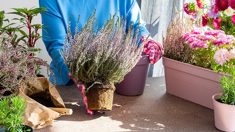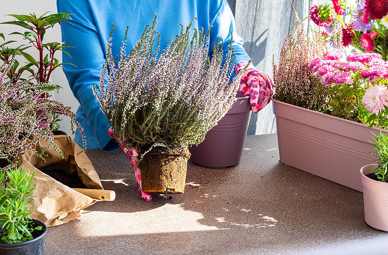Heidekraut und Chrysanthemen gehören zu den bekanntesten Herbstblumen und bringen intensive Farben auf deinen Balkon. So findest du Heidekraut in unterschiedlichen Farbtönen von Weiß bis kräftigem Pink, während Chrysanthemen in Gelb, Rot oder Orange blühen. Beide Pflanzen sind sehr robust und halten auch niedrigeren Temperaturen stand, solange sie nicht völlig durchfrieren. Kombiniere warme Herbstfarben wie Rot, Orange und Gelb mit neutralen Tönen wie Grün oder Silber. Und wenn du kleinere Pflanzen in den Vordergrund und größere nach hinten setzt, wirkt dein Arrangement besonders üppig und abwechslungsreich.