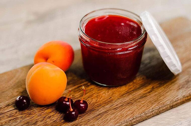 Was gibt es im Sommer besseres als selbstgemachte Marmelade und Konfitüre? Wir haben uns saisonales Obst geschnappt und eine feine Aprikosen-Kirsch-Konfitüre gezaubert. Super einfach - super lecker: gleich nachmachen und den Sommer schmecken! Die Menge ergibt 4-5 kleine Gläser.