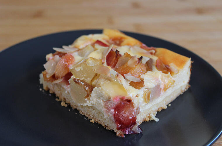 Dieser Blechkuchen mit Mürbeteigboden, Cremeschicht und Obst ist wirklich ein Geschmackserlebnis und perfekt für die nächste Familienfeier! Dank der Pflaumen und Birnen passt er perfekt in den Herbst, wir können ihn uns aber auch sehr gut mit anderem Obst vorstellen. Wir versprechen: Da fragen beim nächsten Familientreffen sicher alle nach dem Rezept ;-)