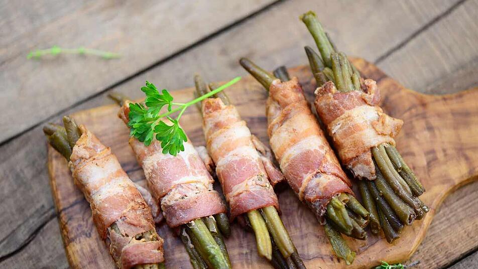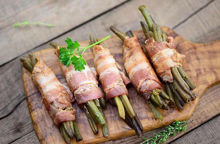 Bohnen im Speckmantel sind in kürzester Zeit zubereitet und du brauchst dafür nur vier Zutaten. Das Rezept ist daher optimal, wenn es mal schnell gehen muss. Zudem kannst du die Bohnen im Speckmantel entweder als Beilage oder als Hauptgericht genießen.