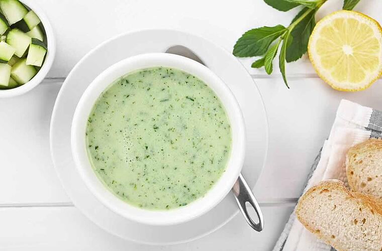 Eine kalte Gurkensuppe eignet sich perfekt für die wärmeren Tage. Die cremige Suppe ist erfrischend leicht und auch noch gesund!