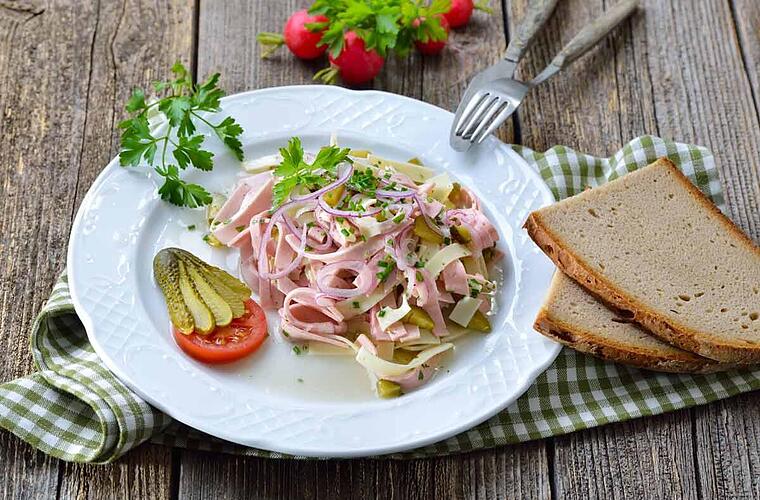 - Der Wurstsalat lässt sich gut am Tag vorher zubereiten und schmeckt besonders gut, wenn man ihn gut durchziehen lässt.