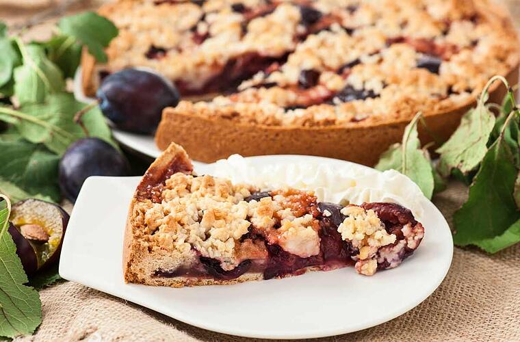 - Zum Schluss die Streusel über die Zwetschgen verteilen. Den Kuchen für ca. 40 Minuten backen.
