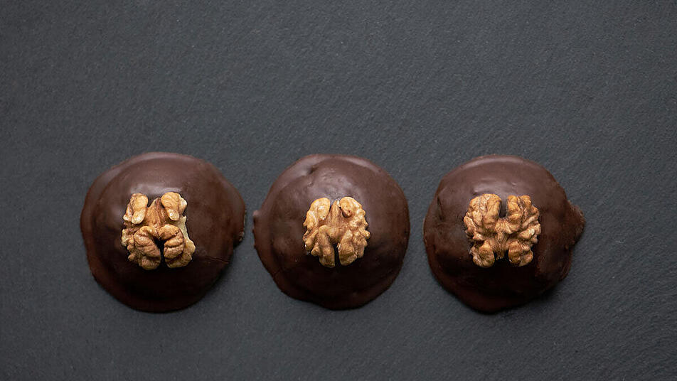 - Am nächsten Tag werden die Häufchen im vorgeheizten Ofen bei 160 °C (Ober-/Unterhitze) etwa 12–15 Minuten gebacken, bis sie leicht gebräunt sind. Nach dem Abkühlen werden sie mit geschmolzener Kuvertüre überzogen – entweder ganz oder zur Hälfte, je nach Geschmack.