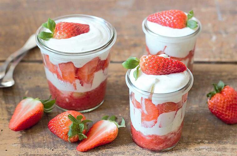 Erdbeeren gibt es zwar fast das ganze Jahr zu kaufen, richtig gut schmecken sie jedoch nur, wenn sie aus regionalem Anbau sind. Im Mai und Juni ist in Franken Erdbeerzeit. Es gibt sie zum Beispiel auf Kuchen, zum Vanilleeis oder als Marmelade. Aber hast du auch schon mal ein Erdbeer-Tiramisu probiert? Es schmeckt himmlisch lecker und im Glas sieht es dazu noch super aus.