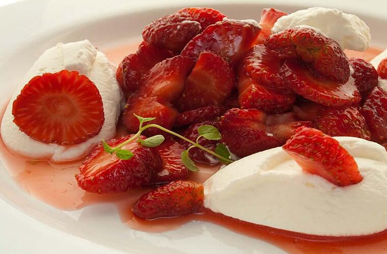 - Das Erdbeerkompott zusammen mit der Schlagsahne auf Tellern anrichten und servieren.