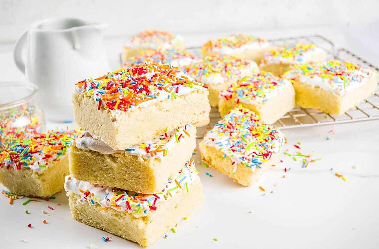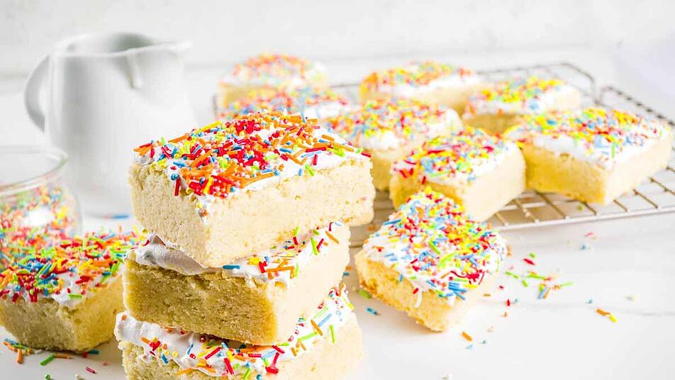 - Die Streusel erst kurz vor dem Servieren auf den Kuchen geben, da sich beim Kühlen die Farbe auf die Sahne-Creme übertragen kann.