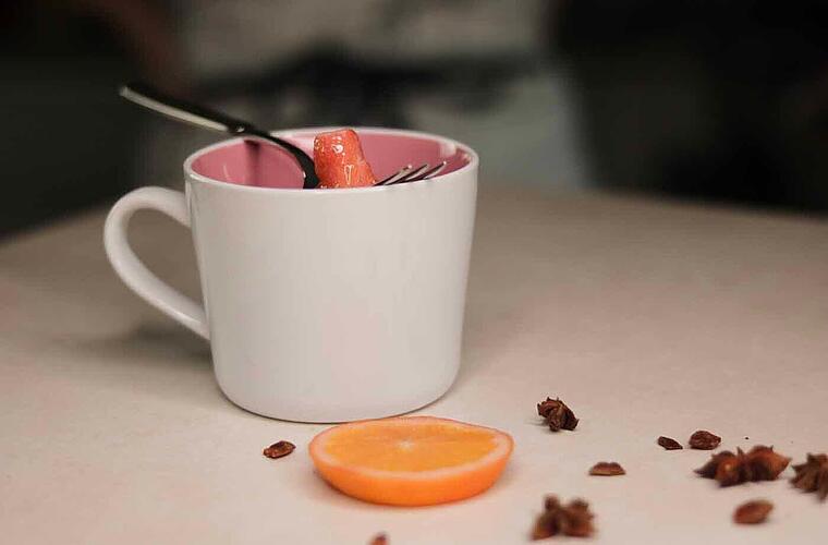 - Die heiße Bowle in eine Tasse geben und eine Gabel darüber legen. Die Zuckerwürfel auf der Gabel stapeln und mit Rum beträufeln. Anschließend den Zucker vorsichtig anzünden.