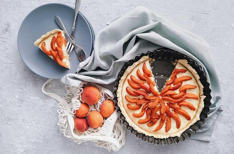 - Während der Kuchen im Ofen bäckt die Aprikosen abgießen und in Spalten schneiden.