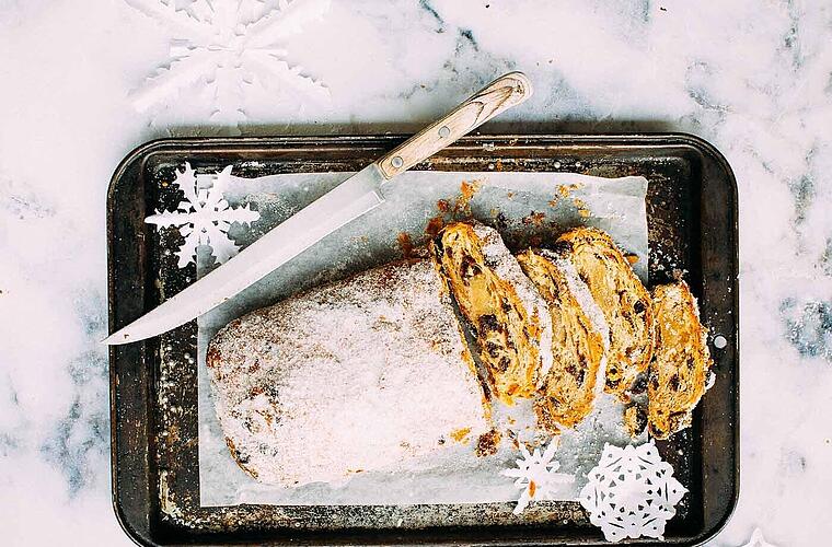 Hefeteig, Rosinen und ein Hauch Rum – der Christstollen gehört einfach zur Adventszeit dazu. In vielen Familien wird er schon Wochen vor Weihnachten gebacken, damit er gut durchziehen kann und sein volles Aroma entfaltet. Der Ursprung des Stollens reicht bis ins Mittelalter zurück, und auch in Franken hat er als festliches Gebäck zur Weihnachtszeit eine lange Tradition. Besonders in ländlichen Regionen wurde er früher oft in großen Mengen gebacken, um ihn dann in Leinentücher gewickelt kühl zu lagern – so hielt er sich bis weit über die Feiertage hinaus.