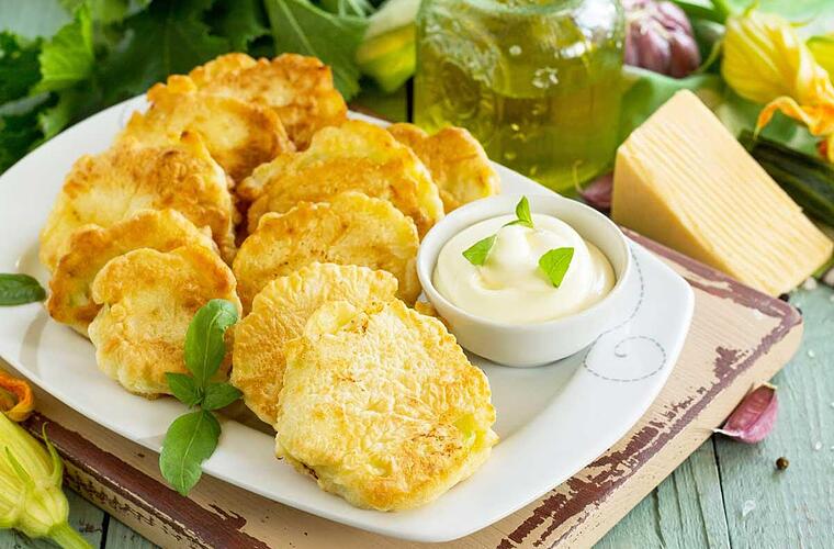 - Die Blumenkohlscheiben nun nacheinander in den drei Zutaten wälzen und anschließend von beiden Seiten in einer Pfanne mit Butter goldbraun ausbacken.
