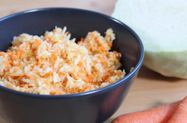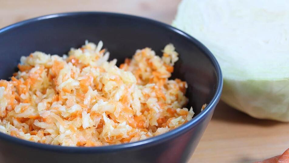 Das ultimative Krautsalat-Rezept von Oma! Das wichtigste ist, dass ihr den Salat ordentlich durchziehen lasst, sodass das Kraut und die Karotten das Dressing gut aufnehmen. Das geht am besten im Kühlschrank oder an einem kühlen Ort für mindestens zwei Stunden. Wir wünschen: An Gudn!