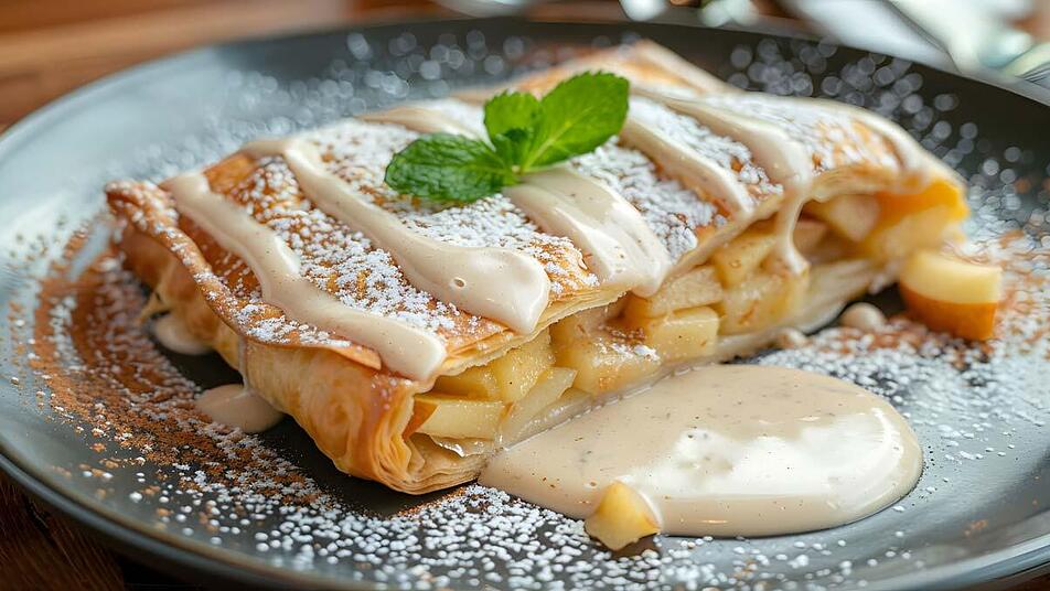 Außen knusprig, innen saftig mit einem Schuss cremiger Vanillesauce - was gibt es Schöneres, um den Tag ausklingen zu lassen oder ein leckeres Menü abzurunden? Unser Apfelstrudel überzeugt nicht nur optisch, sondern ist auch eine wahre Geschmacksexplosion. Die Zubereitung dauert etwas, aber wir haben das Rezept so einfach wie möglich gemacht. So kommt wirklich jeder in den Genuss eines Apfelstrudels, der perfekt in den fränkischen Herbst passt.