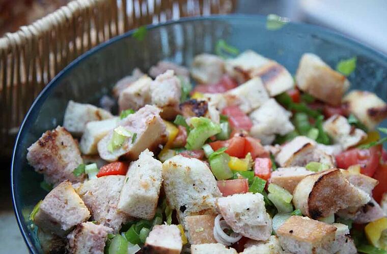 Der Brotsalat ist in der italienischen Küche ein bekanntes und beliebtes Gericht. Etwas abgewandelt passt er jedoch auch wie die Faust aufs Auge nach Franken. Er ist ideal, um Reste zu verwerten, oder auch als leckere Beilage zur Brotzeit.