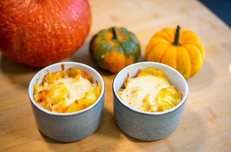 Kürbis muss nicht immer der Star eines Gerichts sein – dieses Gratin beweist, wie lecker Kürbis als Teil der Beilage schmeckt. Unser Kürbis-Kartoffel-Gratin ist schnell gemacht und schmeckt durch die knusprige Käse-Kruste besonders lecker.
