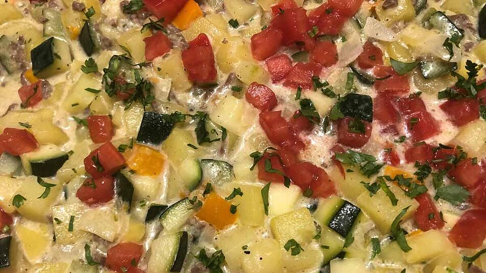 Eine alltägliche Situation für viele: Man kommt von der Arbeit hungrig nach Hause und ist auf der Suche nach einem leckeren Abendessen, das gleichzeitig schnell und einfach geht. Hierfür eignet sich die Zucchinipfanne perfekt. In nur wenigen Minuten ist ein gesundes, leckeres Gericht gezaubert, das sogar die Kleinen lieben werden. Übrigens: Vegetarier können alternativ das Fleisch ganz einfach weglassen.
