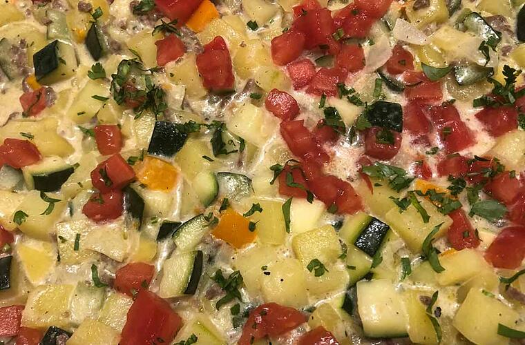 - Als erstes das Gemüse waschen und in kleine Würfel schneiden. Die Kartoffeln nach Bedarf vorher schälen.