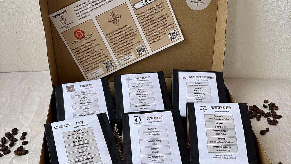 Im Mittelpunkt des Start-ups steht eine einfache, aber geniale Idee: Kaffee-Probierboxen mit sechs ausgewählten Kaffeesorten aus fränkischen und oberpfälzischen Röstereien. Jede Box enthält 50-Gramm-Portionen, die sich ideal zum Probieren eignen. Zusätzlich informiert ein liebevoll gestalteter Flyer über die Herkunft der Bohnen, die Philosophie der Partnerröstereien und spannende Details rund um den Kaffee. Über QR-Codes gelangen die Kundinnen und Kunden direkt auf die Websites der beteiligten Röstereien – ein perfektes Zusammenspiel von Genuss und Information.