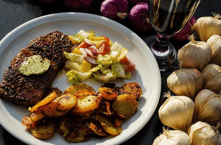 Heute haben wir ein super leckeres Steakrezept ausprobiert! Das besondere daran: die Sauce aus fruchtigem Apfelsaft und aromatischen roten Frankenwein. Als Beilage gab es bei uns Bratkartoffeln und Salat, wir können uns aber auch Knödel gut dazu vorstellen.