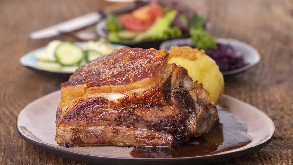 Der Schweinebraten oder Schweinsbraten ist schon seit langer Zeit ein traditionelles Gericht der bayerischen Küche. In Franken ist diese Spezialität vor allem für seine typische Kruste bekannt. Für einen Schweinebraten schmort oder brät man bestimmte Stücke eines Schweines. Vorzugsweise nimmt man dazu Nacken, Schulter oder Rücken und serviert das Fleisch dann mit einer dunklen Bratensoße.