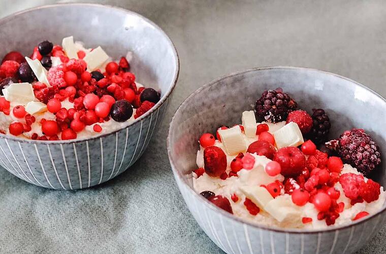 - Wir haben den Frozen Joghurt mit Beeren und weißer Schokolade dekoriert - hier sind deiner Kreativität keine Grenzen gesetzt!