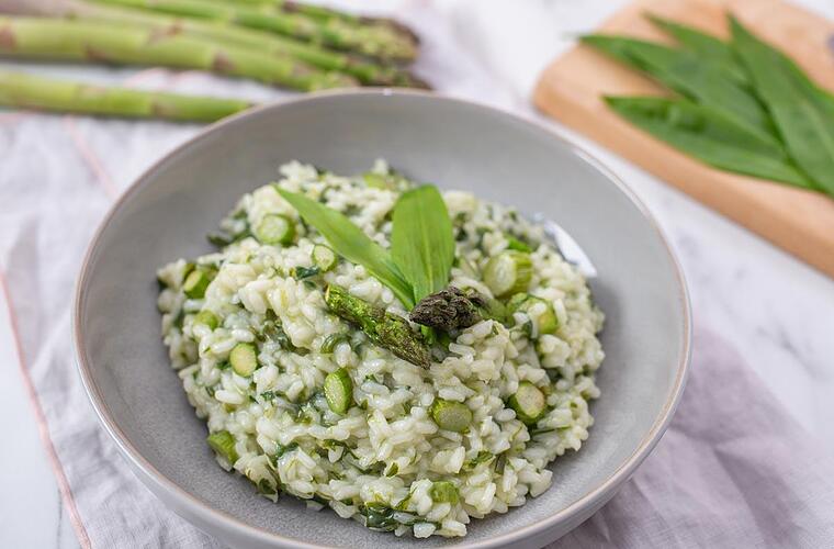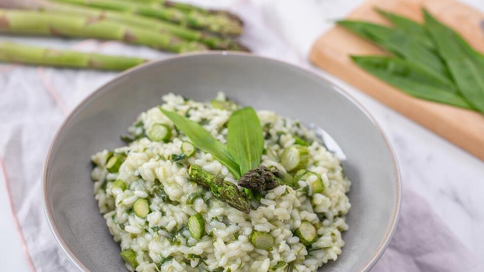 Frisch, bunt und lecker: Dieses Risotto schmeckt nach Frühling pur! Der grüne Spargel muss nicht geschält werden und bringt ohne großen Aufwand Farbe und Vitamine auf den Teller. Mit frischen Kräutern und einem Spritzer Zitrone zauberst du so ein erfrischend-leichtes Alltagsgericht, das im Handumdrehen fertig ist!
