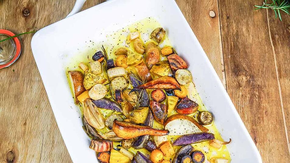 - Das marinierte Gemüse wird in eine feuerfeste Form gefüllt, mit Salz und Pfeffer gewürzt und mit frischen Thymianzweigen ergänzt. Die Form kommt in den vorgeheizten Ofen und wird bei 190 Grad etwa 40 Minuten gebacken, bis das Gemüse goldbraun und leicht karamellisiert ist. Das Gericht kann direkt heiß serviert werden und schmeckt sowohl pur als auch in Kombination mit Reis, Couscous oder einem frischen Joghurt-Dip.